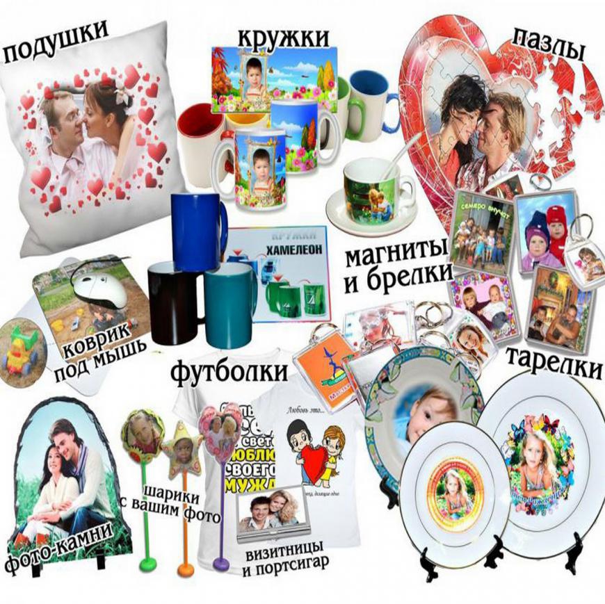 - Различная сувенирная продукция: фото на кружках, футболках, пазлах, подушках, магнитах, часах;